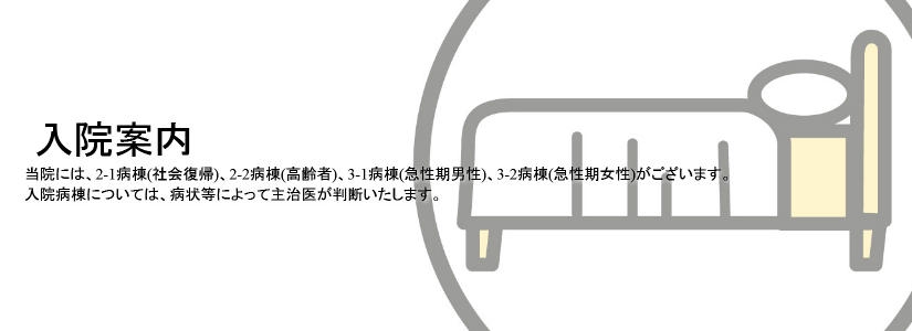 ●入院に際しては、危険な物が無いか持ち物を確認させていただいております。ライター、刃物等は持ち込みを禁止しております。ご理解の上、ご協力をお願いいたします。